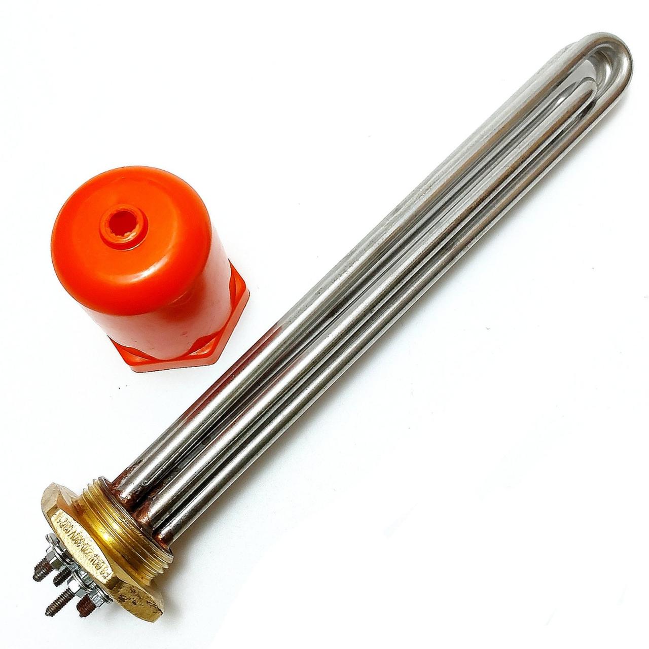 Блок-ТЕН для електрокотла складається з 3 неіржавких тенів по 2000 Вт, які встановлені на латунному фланці з зовнішньою різзю 1 1/4 дюйма (42 мм)